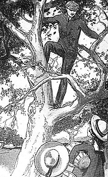 “Here we are. Now I will get up in this tree. I will shake the branches. Keep out from underneath. If you do not, you will get hit.”