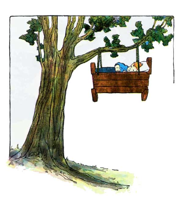 “Let us make a chair with our hands and carry her,” said the Scarecrow. So they picked up Toto and put the dog in Dorothy’s lap, and then they made a chair with their hands for the seat and their arms for the arms and carried the sleeping girl between them through the flowers.