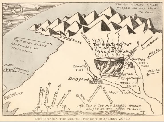 The valley of the Nile had attracted people because it had offered them food upon fairly easy terms. The “land between the rivers” was popular for the same reason. It was a country full of promise and both the inhabitants of the northern mountains and the tribes which roamed through the southern deserts tried to claim this territory as their own and most exclusive possession.