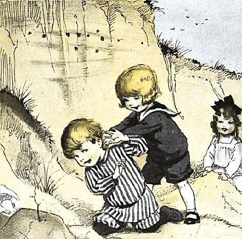At last he stood up. He was covered with sand. But that would brush off. He was not very much pleased with Polly and Tim.
