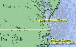 The Roanoke Colony was situated on Roanoke Island, just off the coast of what is now North Carolina. At the time, this area was considered part of Virginia.