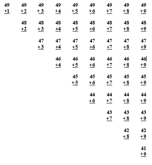 - Special drill should be given to those combinations by which the addition of the digit carries the total into the ten next higher than the number to which the digit is added.