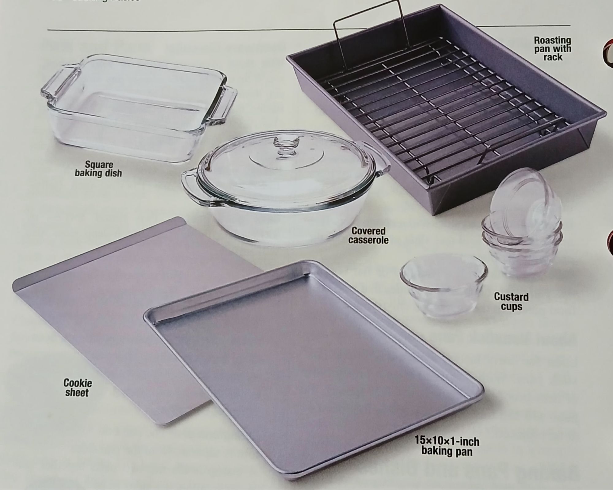 For our purposes, a baking pan refers to a metal container, and a baking dish refers to an oven-safe glass or ceramic container. (If substituting glass or ceramic cookware for recipes that call for baking pans, reduce baking temperature by about 25°F.)