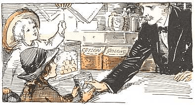 Sometimes he let them play keeping store. Once Polly had really sold some candy to another little girl.