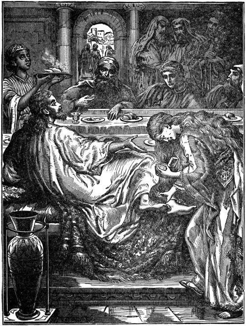 On one occasion, a proud Pharisee, whose name was Simon, invited Jesus to eat with him. But the invitation was a cold one. There was no kiss of welcome, no water to bathe His hot and dusty feet, no perfumed ointment for His head: nothing but a bare admission to a vacant place at the table was granted to Jesus. But there He reclined, His left elbow resting on a cushion, and His feet projecting beyond the edge of the couch.