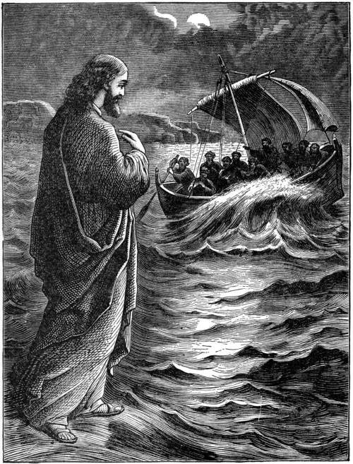 When it was dark, the disciples found themselves alone upon the sea, opposed to strong winds, which tossed the boat upon high waves. Then Jesus went out to them, walking upon the waves; but when the disciples saw Him they thought it was a spirit, and cried out with fear. But Jesus said, “Be of good cheer: it is I; be not afraid.” Peter answered Him, saying, “Lord, if it be Thou, bid me come unto Thee on the water.” And He said, “Come,” and Peter stepped over the boat’s side and walked on the water towards Christ. But when he saw the angry waves around him and heard the roaring of the winds, Peter was afraid and began to sink. He cried out, “Lord, save me.” And Jesus, stretching out His hand, caught him, and said, “O thou of little faith, why didst thou fear?”