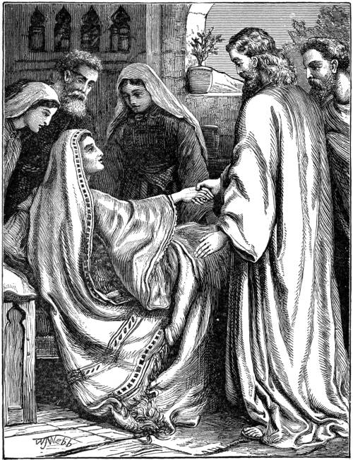 After Jesus had left the Centurion He went to the house of his disciple Peter, and there He saw Peter’s wife’s mother, laid on a bed, sick with fever. And He took her by the hand and lifted her up. The fever left her and she was cured. She rose up from her bed and attended upon them.