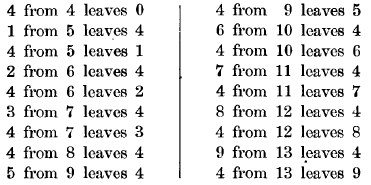 - 4 from 13 leaves 9