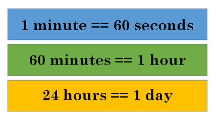 • Show children the image below to give them an idea of the relative magnitudes of seconds, minutes, and hours.
