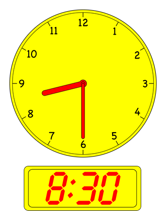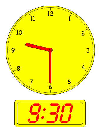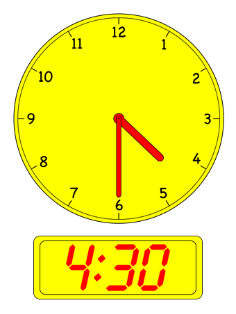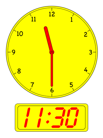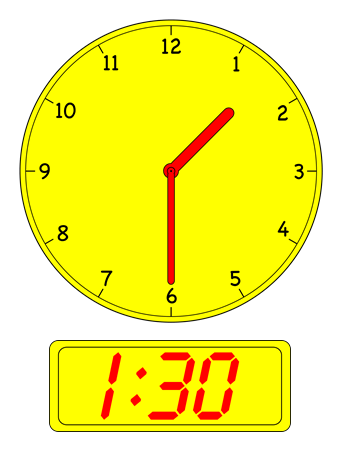 - Show children the clock images below in order and have them recite the times (e.g. Half-past One, One thirty etc.).