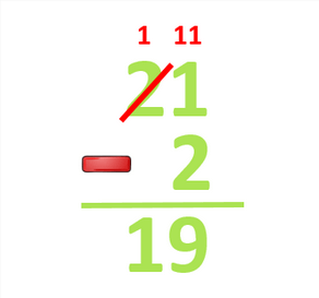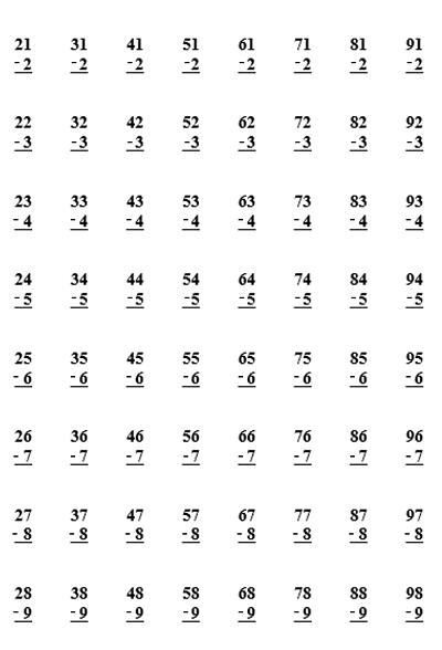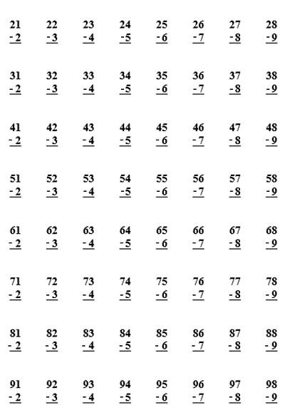 • Teach the children in such cases to add ten to the units of the minuend before subtracting the digit number, and to subtract one from the tens of the minuend to obtain the tens of the answer.