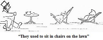 Some of the animals who came to see him were so sick that they had to stay at the Doctor’s house for a week. And when they were getting better they used to sit in chairs on the lawn.