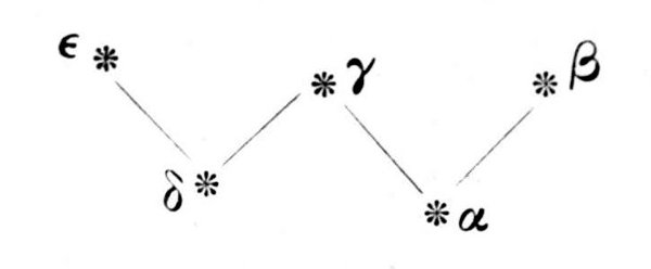 There are 55 stars in this constellation, of which five are of the 3rd magnitude, five of the 4th, etc.