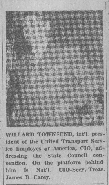 Willard Saxby Townsend was born December 4, 1895. He Died on February 3, 1957. He was one of the first black American labor leaders. He improved the wages and working conditions of redcaps (railroad baggage porters). Townsend helped redcaps gain a fixed salary, plus retirement and insurance benefits. He was inducted into the National Railroad Hall of Fame.