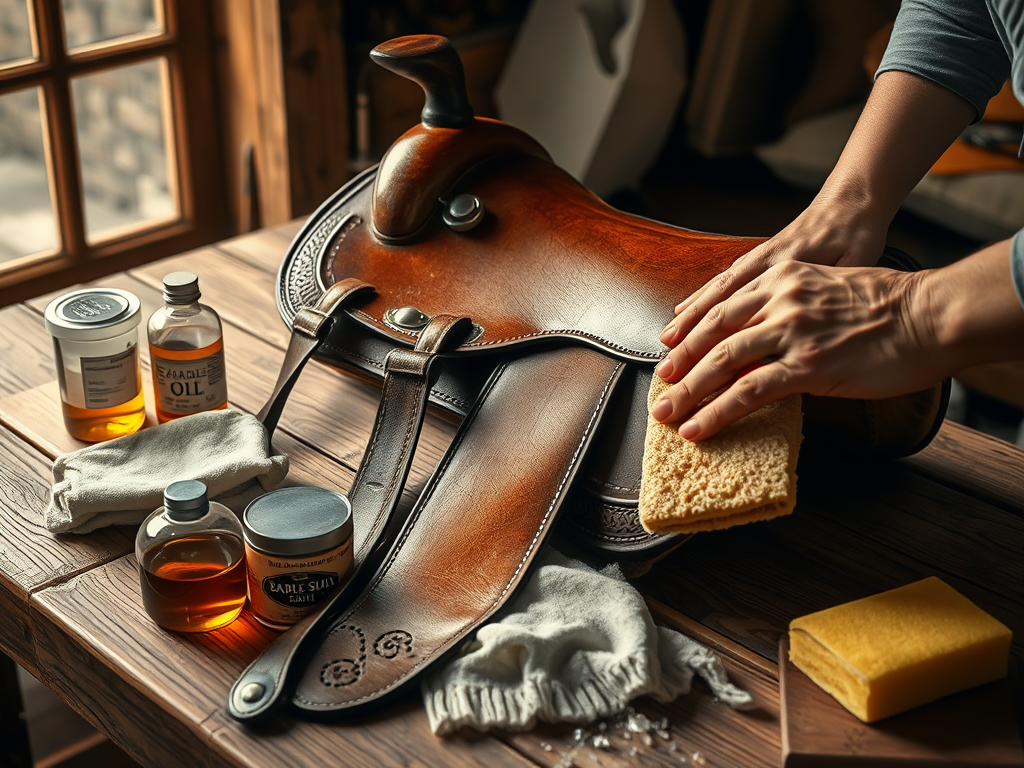 Step 6 Rub saddle oil over the saddle work it in well with Cloth.