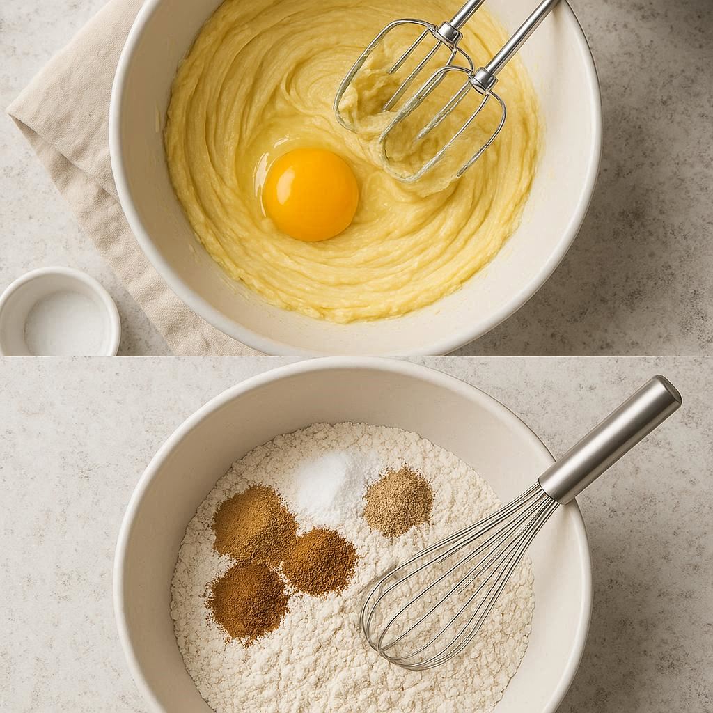 4. In a large bowl, whisk together cinnamon, baking soda, salt, ginger, nutmeg, and remaining 4 cups flour.