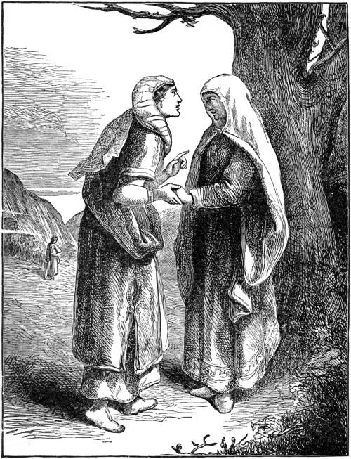 What a foolish man the builder of the house shown in our picture must have been! Of course, when the wind blew and the waves dashed against his house, it would fall. Look how the sea has washed the foundation away, and how the roof is falling in! And the people; see how they are fleeing to save their lives! And all this calamity because he built his house upon the sand. But the other house, shown in the distance: how firmly that stands! What a bold front it offers to the waves, and how safely it resists the fury of the storm. Its foundations are sure, because they rest upon the solid rock.