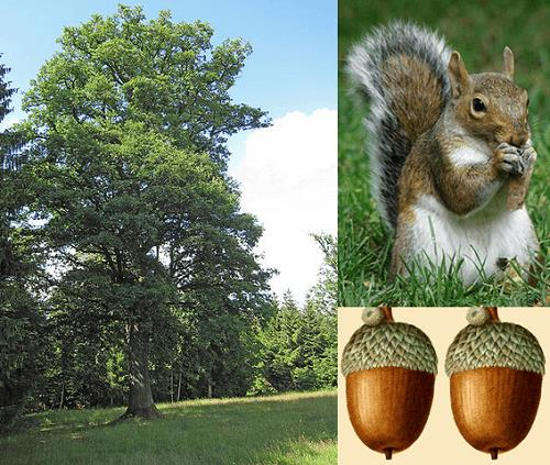 • Examine the pictures of the oak tree, squirrel, and acorns below.