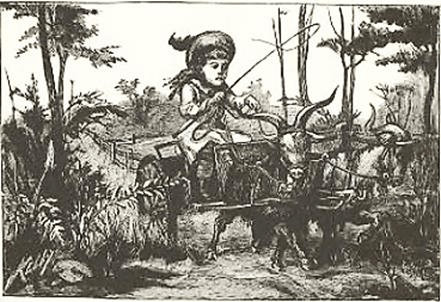Our two goats and the cart are here, Tom; we can ride to the mill.