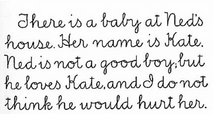 There is a baby at Ned’s house. Her name is Kate. Ned is not a good boy, but he loves Kate, and I do not think he would hurt her.